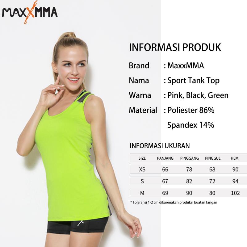 Sport Tank Top MAxxMMA didesain dengan bahan premium nyaman untuk menemani aktifitas olahragamu. Desain warna cerah dengan bahan sejuk dan mudah kering agar selalu nyaman digunakan.